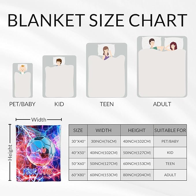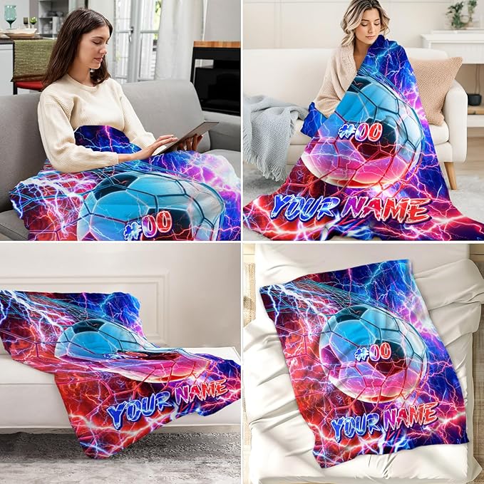 Personalized Kids Blanket Soccer Gifts for Boys 8-12 - Cozy Fuzzy Warm Sport Throws Stuff for Couch, Office & Travel