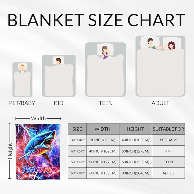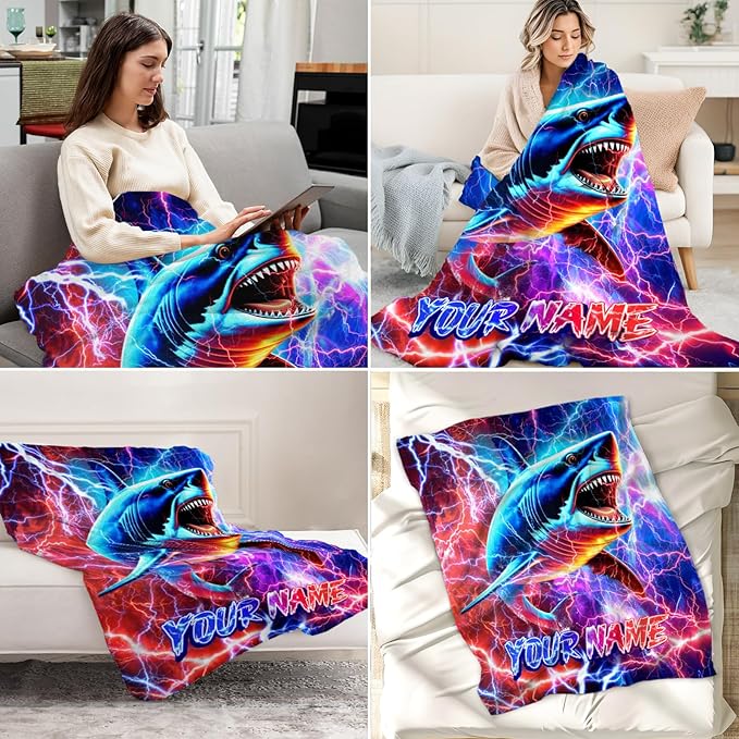 Personalized Boys Blanket Gifts Shark Blankets for Kids, Shark Lovers - Cozy Furry Plush Flannel Throws for Couch, Sofa & Travel