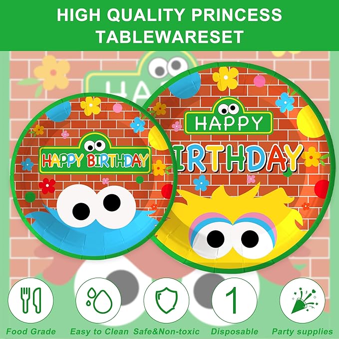 147PCS Cookie Party Supplies for Baby Birthday Party Street Themed Tableware Set Napkin Cups Forks Knives for 20 Guests