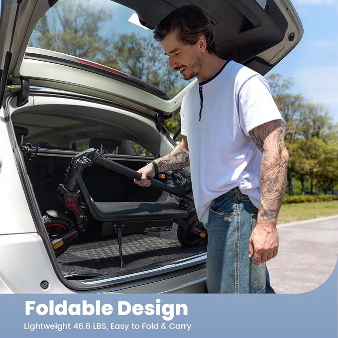 - 【Easy Folding & Portable】 This foldable scooter folds in seconds and weighs just 46.6 lbs, so it’s easy to carry, store, or fit in your car trunk. Supports riders up to 264 lbs