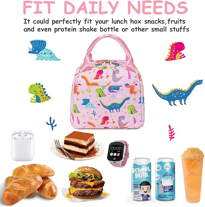CAMTOP Lunch Box Kids Insulated Lunch Bag Large Reusable Leakproof Cooler Lunch Bags for Boys Girls School Travel Picnic (Pink Dinosaur)