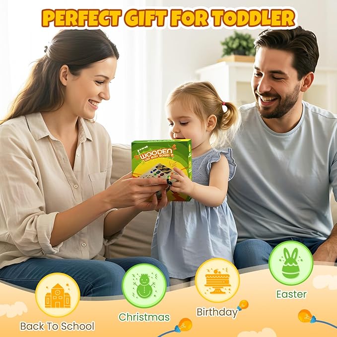 - [Interactive Toddler Learning Board] This wooden busy board features multiple engaging switches and vibrant LED lights (requires 2 AAA batteries, not included) to spark curiosity. Designed without screens or noise, it encourages toddlers to explore everyday electronics safely while developing fine motor skills.