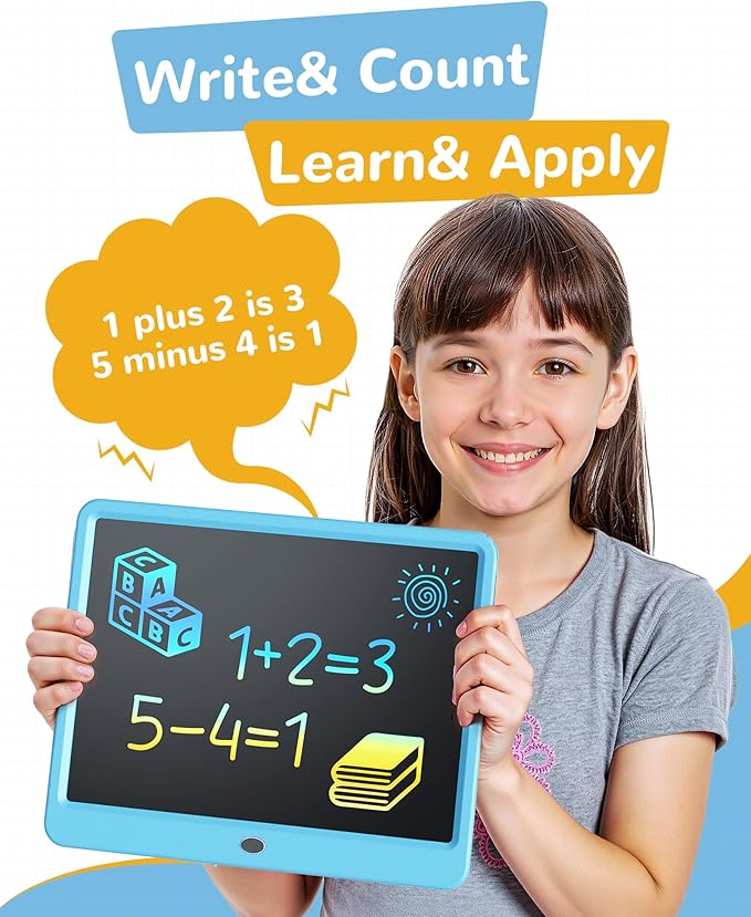 - EYE PROTECTION LCD WRITING TABLET: Adopts 2022 LCD pressure-sensitive technology and 12-inch LCD colorful screen. This doodle board toys without radiation, no glare, safe and comfortable even use for a long time.