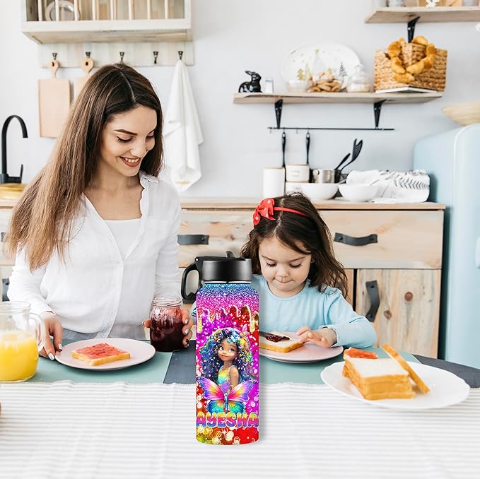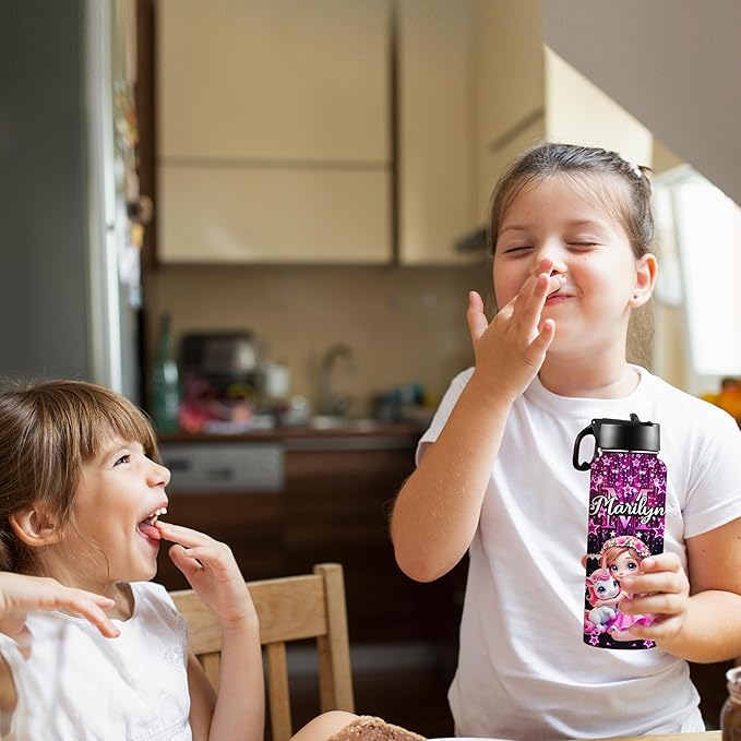 - Custom Water Bottle with Straw: The 18 oz and 32 oz sizes are perfect for kids and adult, The lid with silicone straw makes drinking easy and enjoyable for you, This thermos water bottles can be used for back to school, sports, fitness, hiking, camping, travel or office.