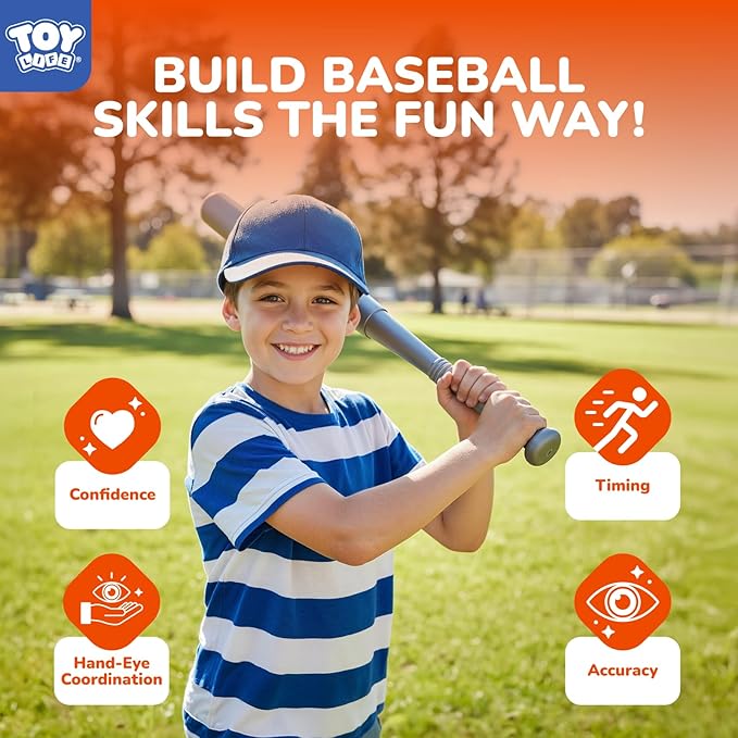 - 【Builds Skills & Confidence】This interactive pop and pitch baseball toy promotes hand-eye coordination, timing, and accuracy. A great baseball training machine for toddlers and young players to practice and improve skills in a playful way.