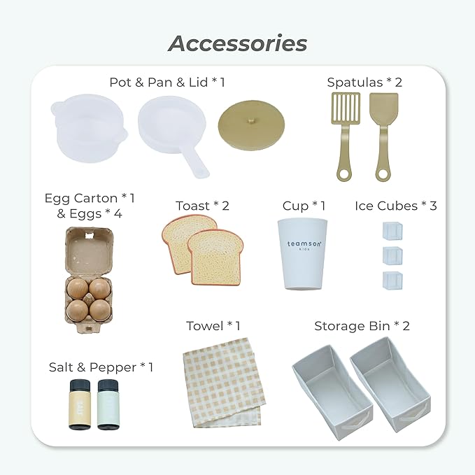 - Full Set of 21 Accessories Ensures Ready-to-Play Fun: Comes complete with cookware, utensils, salt and pepper shakers, play eggs, ice cubes, and more all stored inside the kitchen. No extra purchases needed. Promotes organizational habits and imaginative creativity from day one.