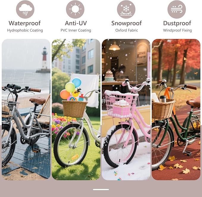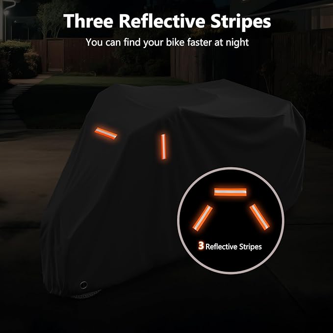 - 【Three Reflective Strips】This bike cover is equipped with three multi-directional reflective strips, allowing you to quickly find your bicycle at night.