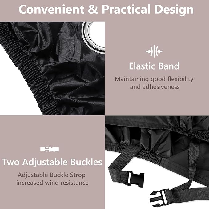 - 【Multiple Windproof Safety Designs】Featuring a quick-release buckle design combined with elastic material, the bicycle cover securely fastens to the bicycle. It also includes a theft-proof lock hole to ensure the safety of both your bicycle and the cover.