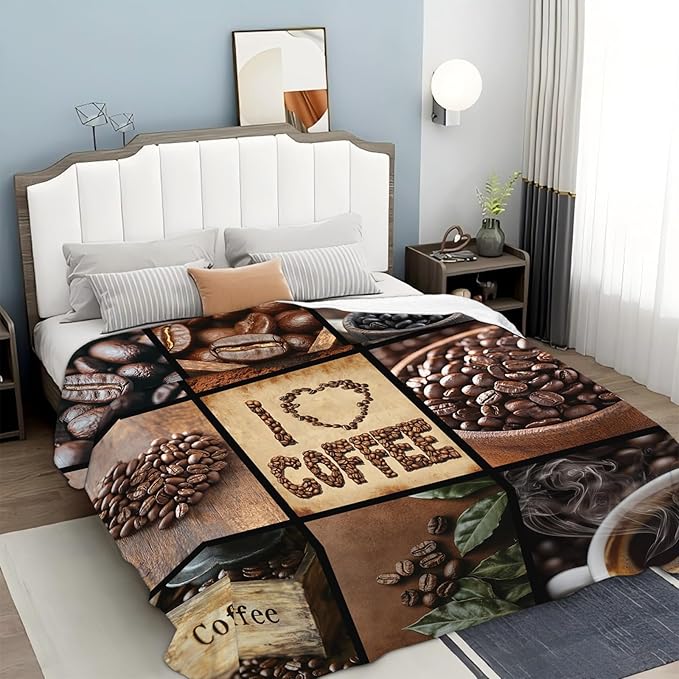 Coffee Blanket for Women, Coffee Lover Fleece Blanket Gifts for Mens, Warm Cozy Soft Flannel Stuff for Bed Sofa Couch 80" x 60"