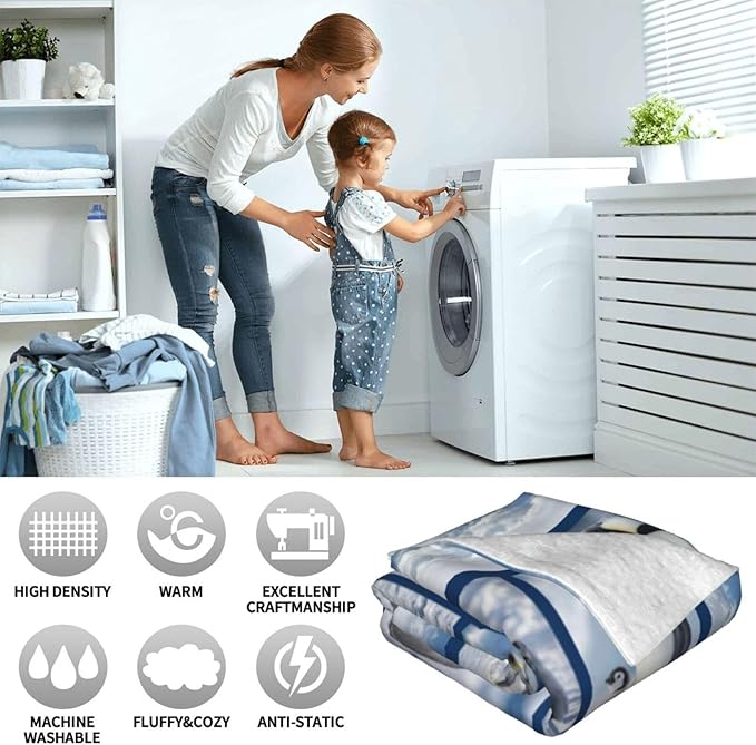 Penguin Blanket for Kids, Cute Penguin Throw Fleece Blanket Gifts for Boys Girls, Warm Cozy Soft Flannel Stuff for Bed Sofa Couch 50" x 40"