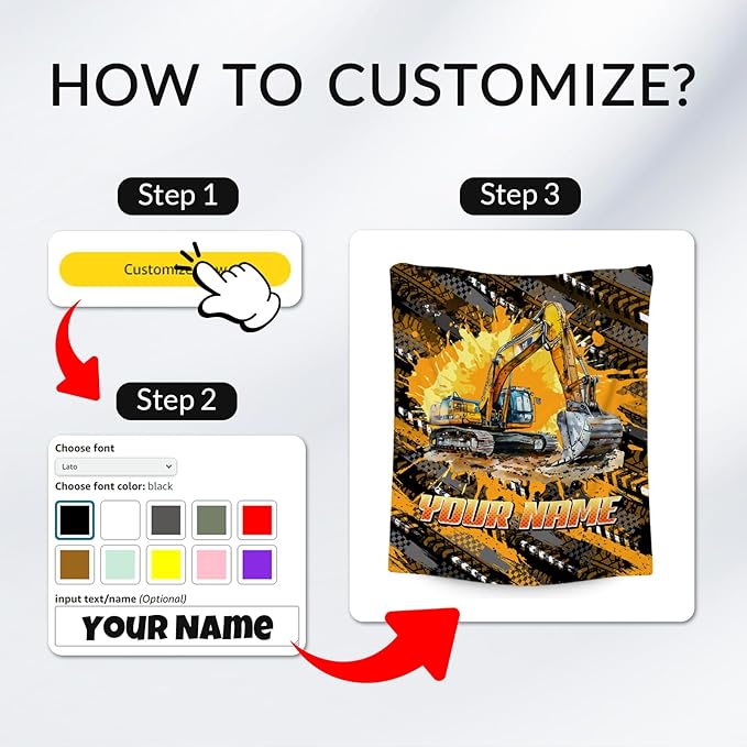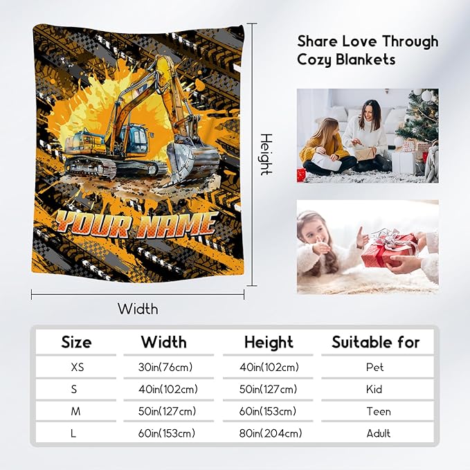 Mercuryelf Kids Blanket for Boys Personalized Excavator Blankets Gifts - 4 Sizes Cozy Flannel Throw for Toddler