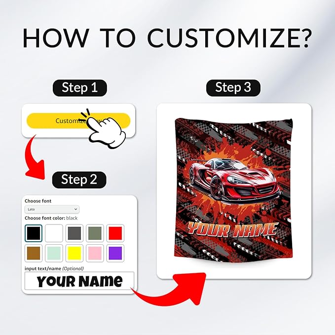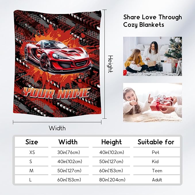 Mercuryelf Blankets for Boys Custom Racing Car Blanket Gifts - 4 Sizes Cozy Fleece Throw for Kids Teens