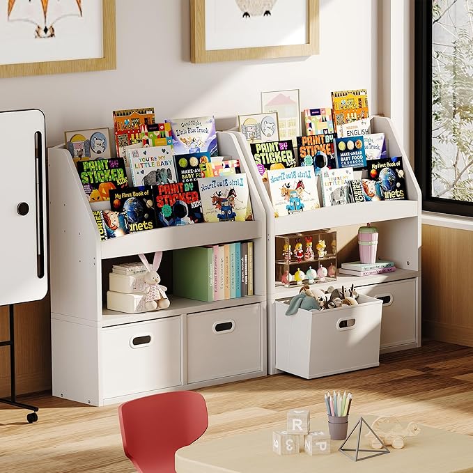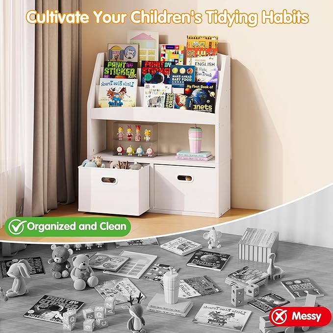 - 【Ample Storage for Various Needs】Designed to grow with your child, this kids book storage solution offers abundant space for all their essentials. It's not just a baby bookshelf for first books; it's a comprehensive organizer for storybooks, toys, and more, helping to keep their world neat and organized as their collection expands