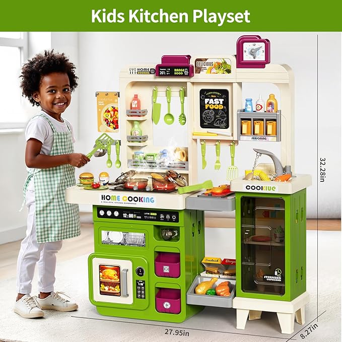 - Top Present for Cooking Lovers: The kids kitchen playset design is intended to create a realistic play experience and is proportioned perfectly for kids. Perfect Gift for little Chef for ages 3+, this playset helps develop fine motor skills, social interaction, and creativity. A great choice for kids christmas gifts, birthdays, holidays, or everyday surprises!