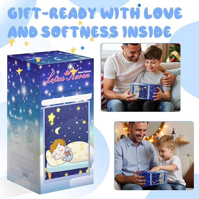 - 🎁 The Perfect Gift for Any Occasion: Glow in the dark blankets are popular holiday gifts for 1-12 year olds. Christmas dinosaur blanket 2025! If you are choosing birthday gifts, Christmas gifts, children's day gifts, Easter gifts, Halloween gifts, Thanksgiving gifts, New Year's gifts for your daughters sons or grandchildren, you may consider our dinosaur glow blankets, which will surely make the kids happy! 🎄🌟