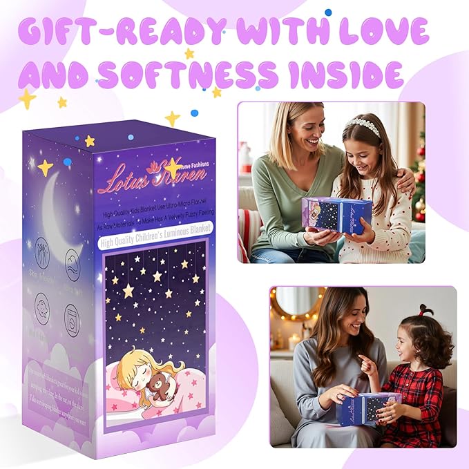 - ✨ Magical Glow Effect: Simply expose this girls blanket to sunlight or bright indoor light for 20 minutes to unlock a brilliant glow-in-the-dark display! The vibrant bow, heart pattern and the warm worlds: Love, Home, Warm, Hope, Comfort will illuminate softly in darkness, creating an enchanting nighttime experience.