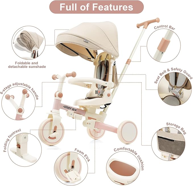 - Effortless Assembly & Reliable Support: The Merax trike stroller is designed to help kids develop balance and coordination. With a step-by-step assembly video, you can set it up within minutes—no hassle, just fun!