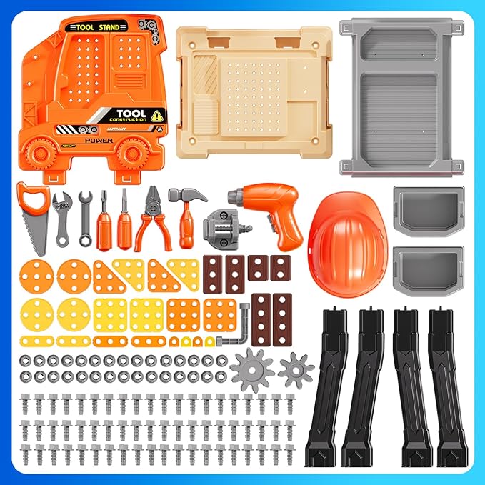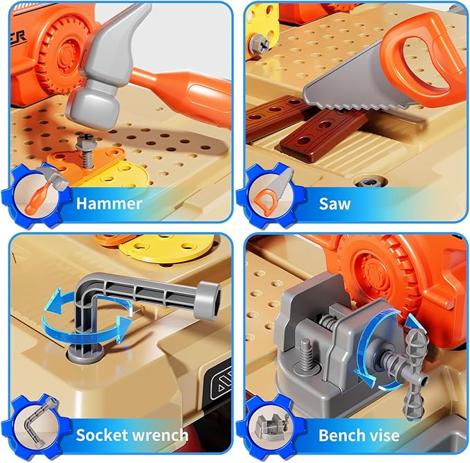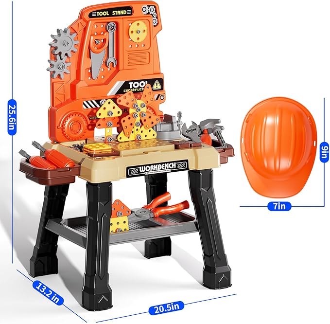 - Safe and Durable Material -We prioritize kid's safety. The tool bench set is made from non - toxic, ABS plastic materials and has passed the American toy standards CPC, CPSIA, and ASTM tests. There are smooth surface without sharp edges, ensuring your kids can play worry free. Moreover, the tool bench structure is very stable, no need to worry about shaking and sturdy enough to withstand accidental knocks and drops.Excellent gifts for girls boys 3 4 5 6 7 8 9 years old.