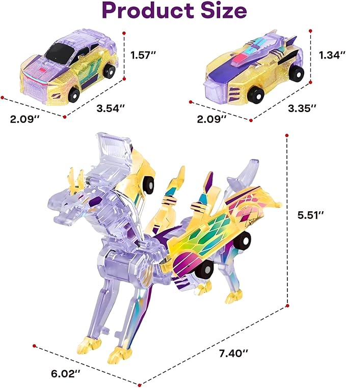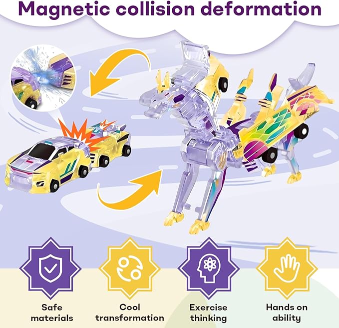 - Magical Dinosaur Transformation Watch the amazing collision as cars transform into dinosaurs, combining two favorites in one toy for an exciting and unique playtime.