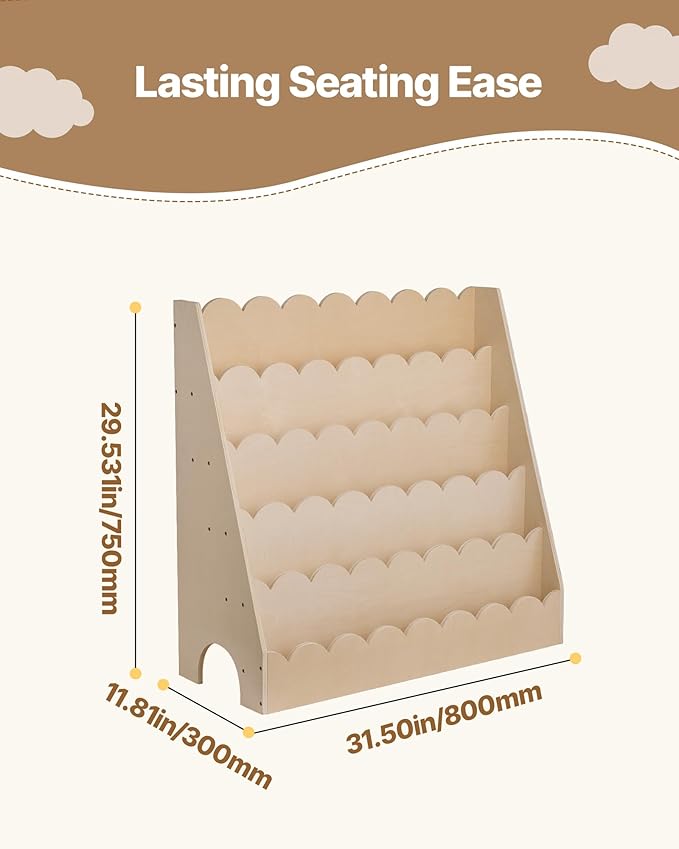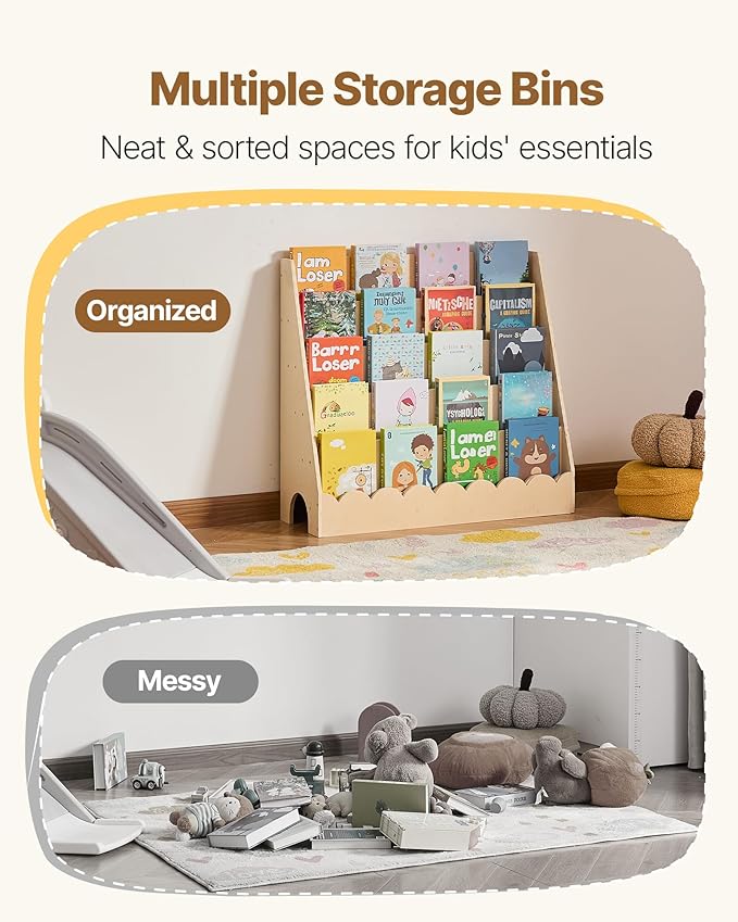 - Develops Self-Organization: The simple design of this toddler bookshelf enhances any space while inviting kids to enjoy tidying up. Helps build independence and supports positive daily habits