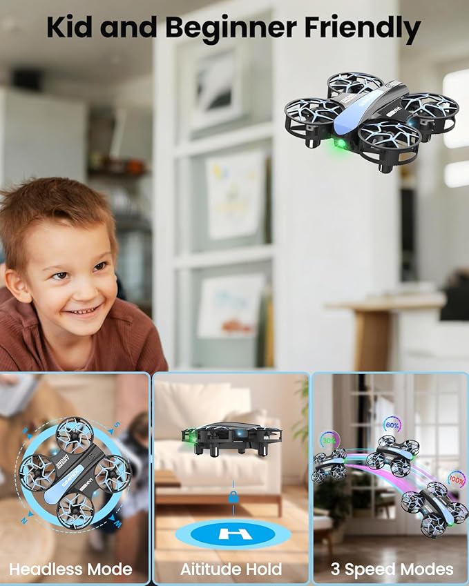- The Perfect Beginner Drone for Endless Fun-Get ready for easy and exciting flights right out of the box! With One-Key Takeoff/Landing and Altitude Hold, you can master stable hovering without any experience. The Headless Mode removes confusion about direction, so you can focus on the joy of flying. It's the ultimate RC toy for kids, teens, and beginners!
