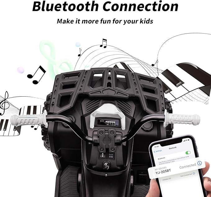 - WIRELESS CONNECTION: This ride on toy for kids 4-8 is equipped with Wireless. Kids can now wirelessly connect their devices and cruise to their favorite tunes while on the go.