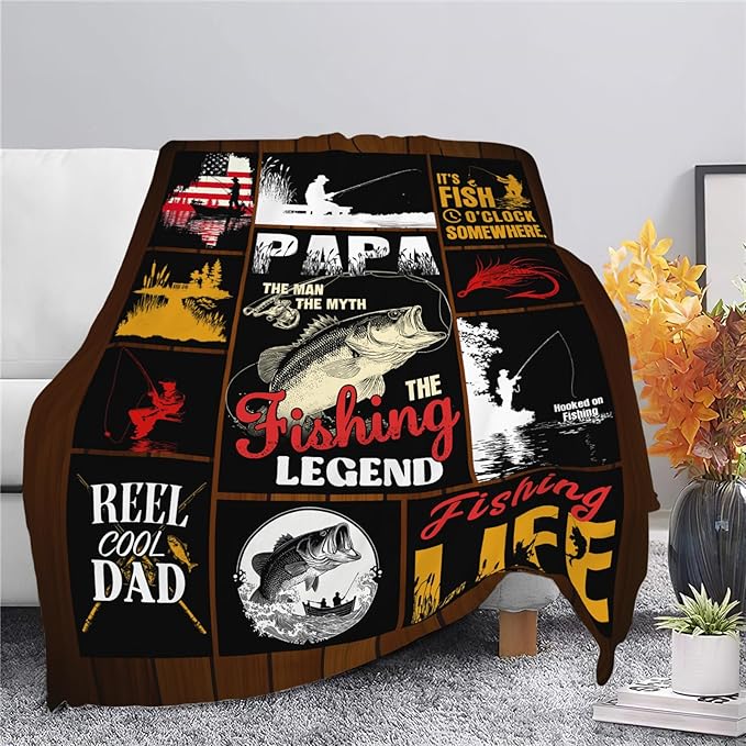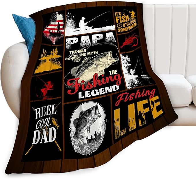 Fish Throw Blanket Fishing Stuff Gifts for Kids Girls Boys Adults Women Men Soft Cozy Warm Plush Fluffy Fuzzy Fleece Blanket Decor 60''X80''