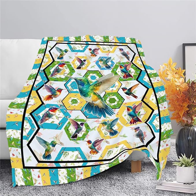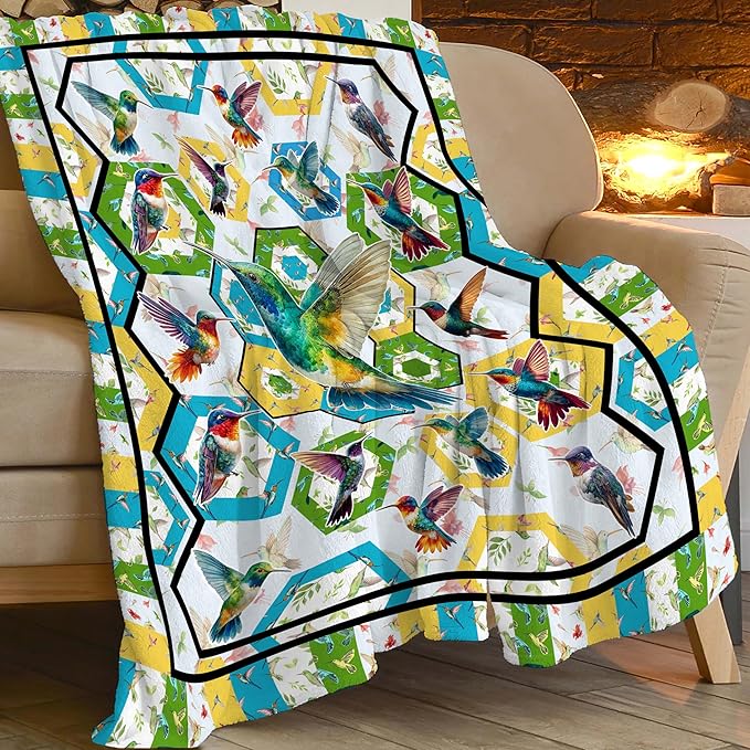 Hummingbird Throw Blanket Hummingbird Bird Stuff Gifts for Kids Girls Boys Adults Women Men Soft Cozy Warm Plush Fluffy Fuzzy Fleece Blanket Decor 50''X60''