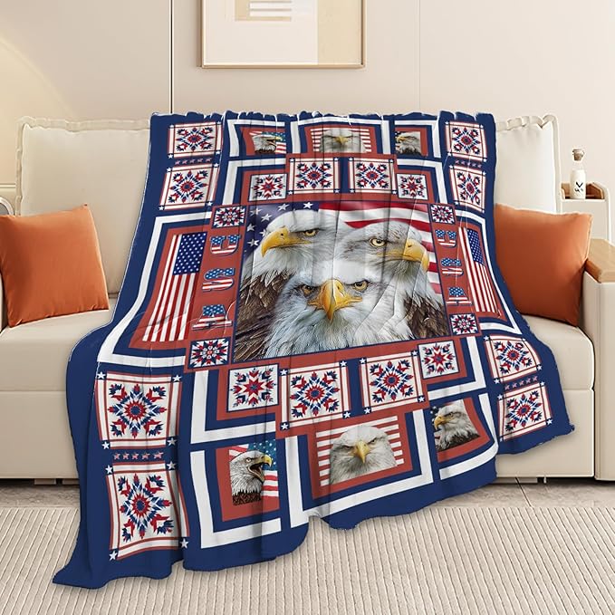 Eagle Throw Blanket American Flag Bald Eagle Stuff Gifts for Kids Girls Boys Adults Women Men Soft Cozy Warm Plush Fluffy Fuzzy Fleece Blanket Decor 50''X60''