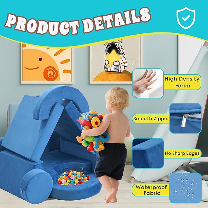 - Safe and Comfortable Foam: The foam of this kids' sofa is characterized by high density, light weight, softness, sturdiness, and elasticity. It can withstand children's exploration, crawling, and other building themed games. The toddler play sofa has no hard edges, sharp corners, or any rigid structures, providing safety and comfort for children's playtime