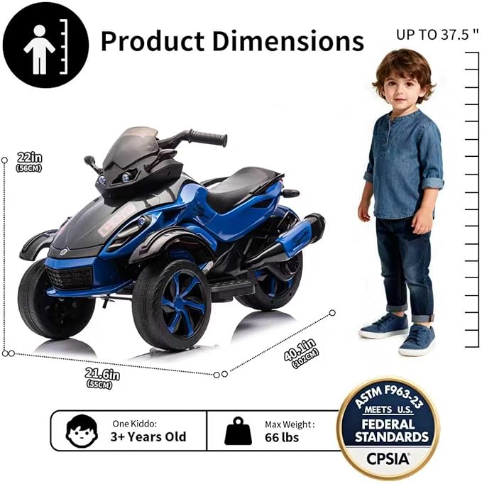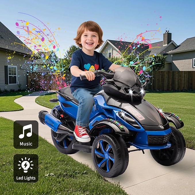 - Exciting Lights & Sounds: Your child will love this 3-wheel electric motorcycle with bright LED lights and a built-in music player (volume adjustable). Plug in a USB drive to play their favorite songs, turning every ride into a joyful adventure!