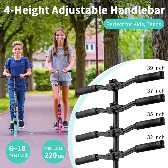 - Adjustable for Growing Kids: This scooter features a large, adjustable handlebar with 4 height options to suit riders of different sizes. It grows with your child, ensuring they can enjoy the ride as they get taller. No need to buy a new scooter every year—this one fits kids and teens alike. It makes the perfect birthday or Christmas gift for children, offering years of fun and enjoyment.