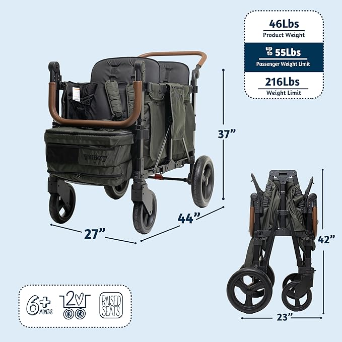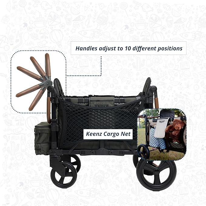 Keenz XC EVO - Luxury Comfort Stroller Wagon | Foldable 2 Passenger with Adjustable Canopy | Green