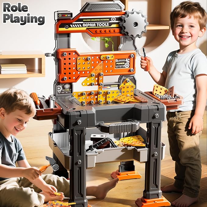- Durable Toddler Mechanic Toys: Designed with smooth edges and sturdy materials, our boys tool set is suitable for carrying out for parent-child play together. Supports hand-eye coordination and helps early interest in building creative construction toys
