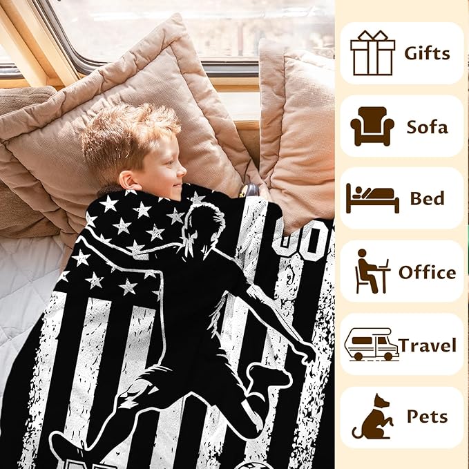 Soccer Gifts for Kids Son Grandson, Personalized 40x30 Inches Small Lap Size Soft Cozy Warm Custom with Name Soccer Blankets for Sofa Chairs