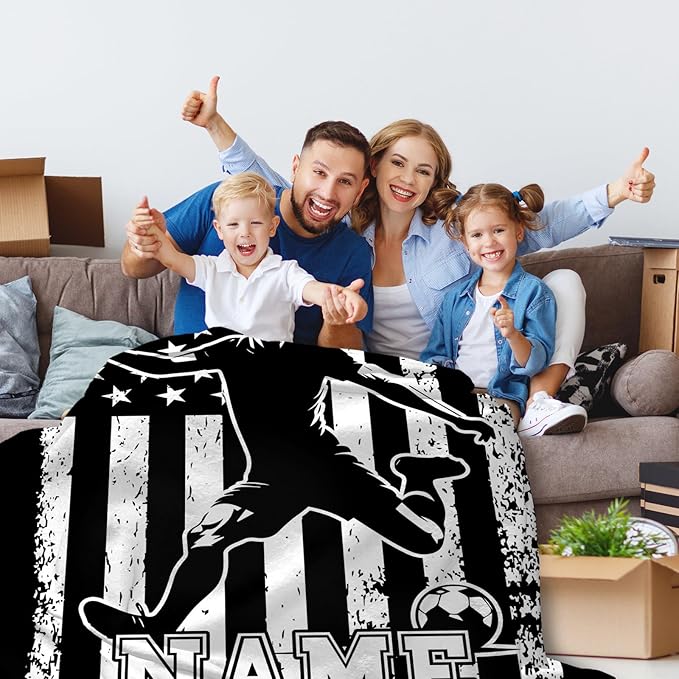 Soccer Throw Blankets for Kids Boys Teens 8-12, Personalized 60x50 Inches Plush Comfy Soft Custom Sports Throws Decor for Couch Bed Home Gifts Ideas