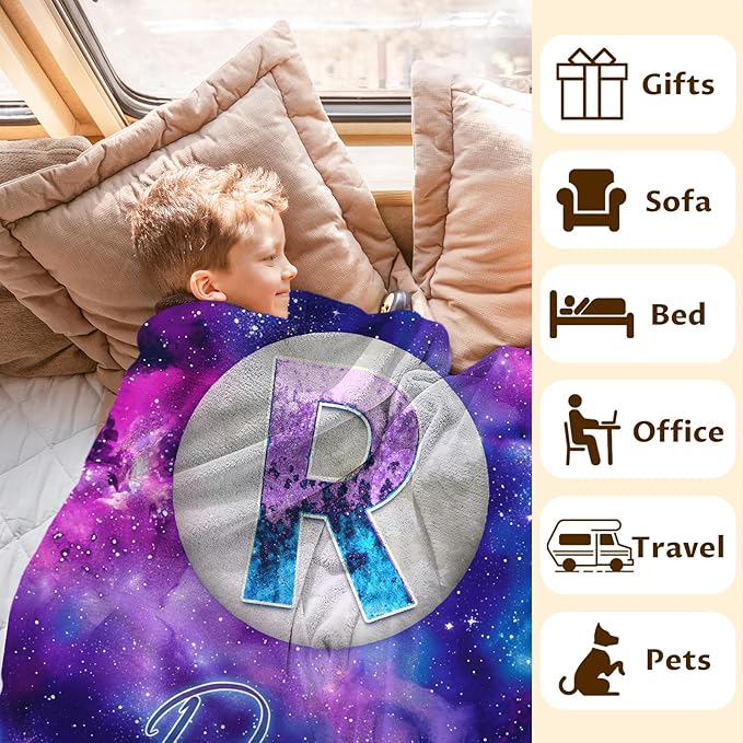 Custom Blanket Gifts with Name for Kids Boys Girls - Personalized Flannel Throw Blanket Soft Cozy Fuzzy Bed Throws - Name Monogram Blankets for Couch Sofa Bed Decor