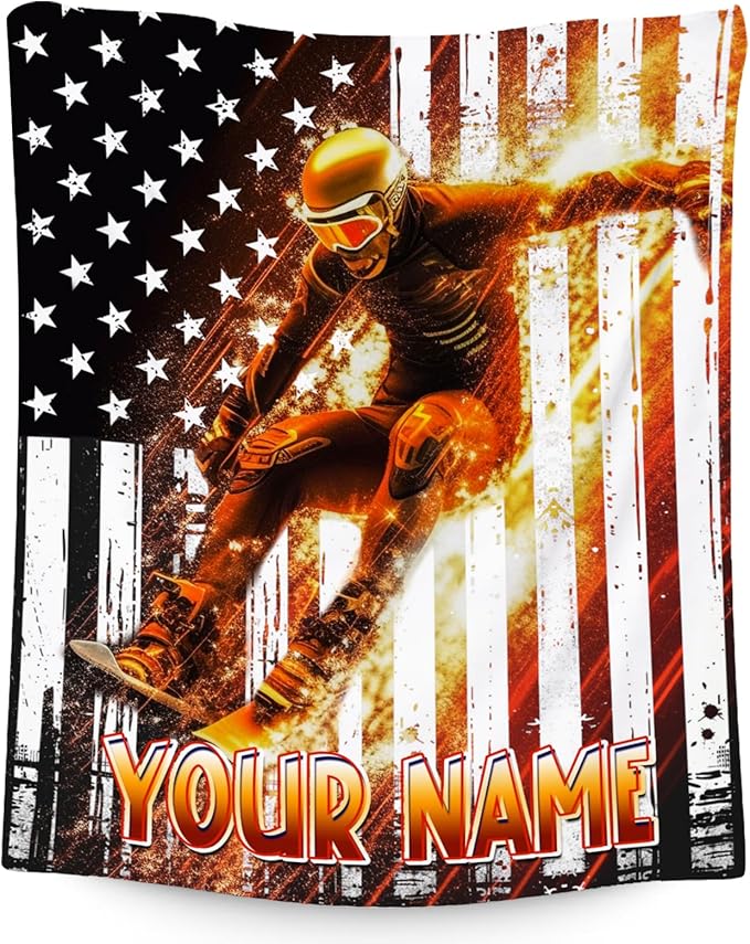 Personalized Blanket for Boys, Kids Blanket for Ski Lovers, Custom Gifts for Boys, Skiing Sports Throw for Kids, Plush Throw for Couch & Sofa, 30"x40"