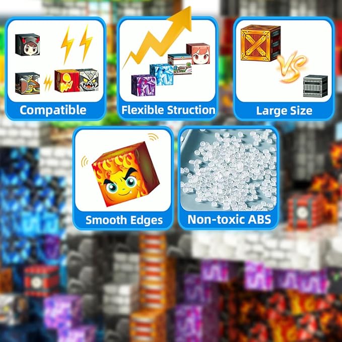 - Our magnetic building blocks can achieve creativity and unique structures. The magnetic active cube is made of high-quality ABS material, with rounded edges and appropriate size. Compatible with popular market brands, allowing you to expand your collection by adding more building blocks. You can form a large collection with other buildings and play games among multiple people to promote diversity of thinking and immerse yourself in the fun of architecture. Rounded corners and appropriate dimensions will not harm small hands.