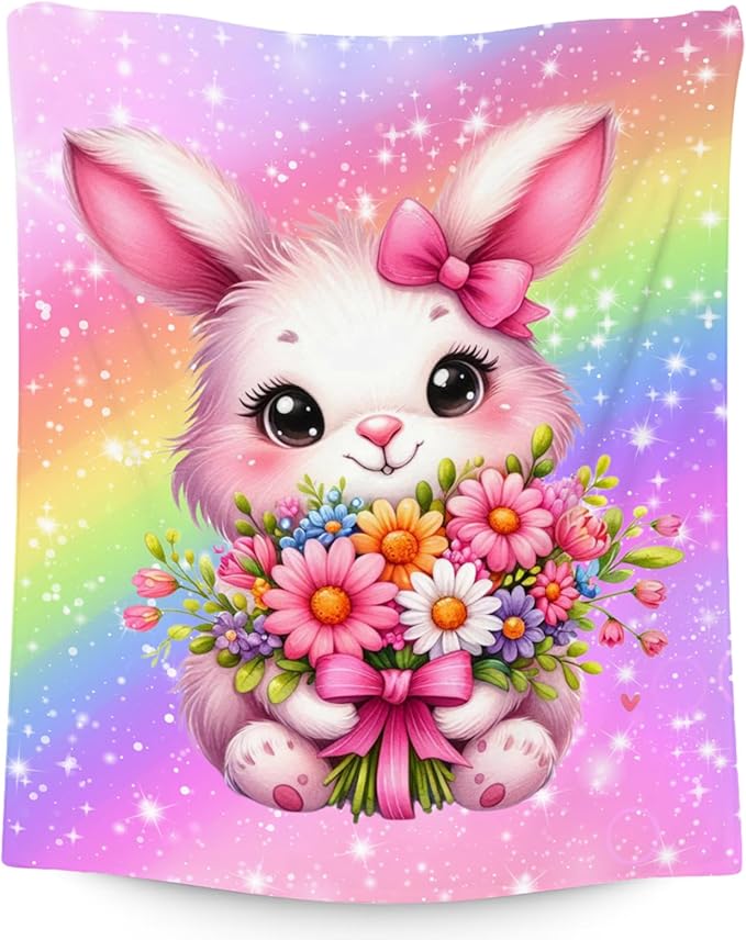 Kids Throw Blanket, Bunny Blanket for Girls, Gifts for Daughter Women, 60"x80" Rainbow Throws Decor