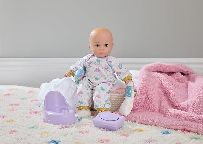 - This adorable 14 inch baby doll comes dressed in unicorn and rainbow adorned pajamas and includes a unicorn friend, pacifier, bedtime slippers.