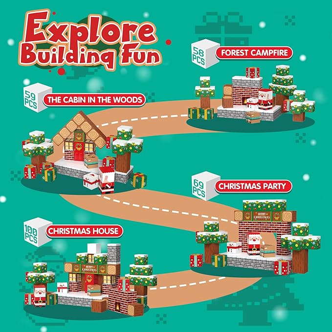 - Montessori and Sensory Toys:Unlike standard building blocks, our Christmas-themed blocks offer a variety of patterns, creating a lively play experience. They can be used as toys to encourage hands-on learning, stimulate creativity, and develop motor skills