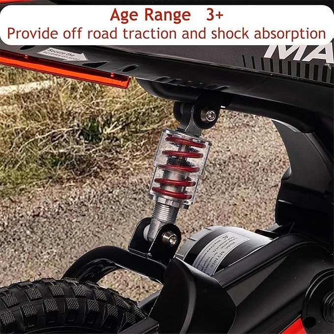 - 【24V Kids Electric Dirt Bike】Built for young riders seeking adventure, this electric dirt bike supports up to 135 lbs with a durable steel frame and reaches speeds up to 14 mph. Oversized hydraulic suspension and motocross-style geometry deliver an authentic riding experience for trails, fields, and backyards.