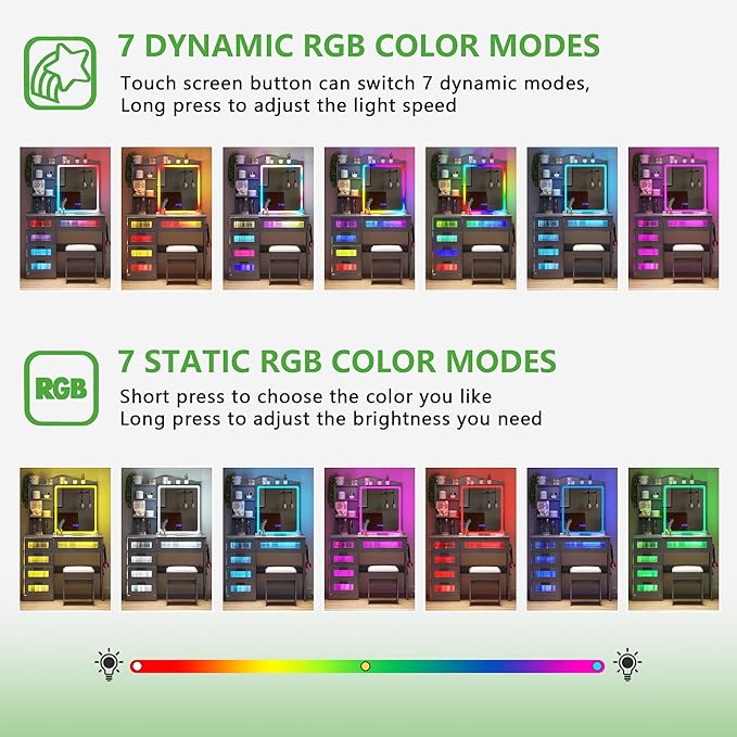 - ✅ 【RGB Lighting】 Dresser comes with dynamic and static lighting and a remote control allowing you to control it remotely,You can also feel the light in your body.