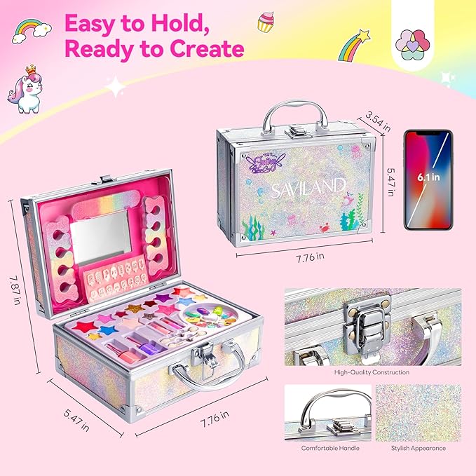 SAVILAND Kids Makeup Kit 32 Pcs: Toxic-Free Washable Makeup For Kids 5-12 Portable Real Toddler Kit with Eyeshadow Lip Gloss Cosmetic Case Birthday Christmas Gifts for Girls