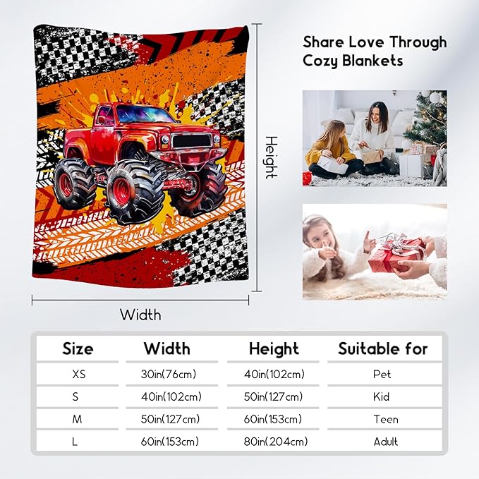 Toddler Blankets for Boys, Truck Gifts for Adults Teens, 60"x80" Plush Cozy Car Throw Decor for Bedroom