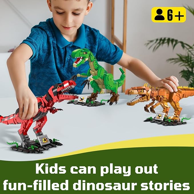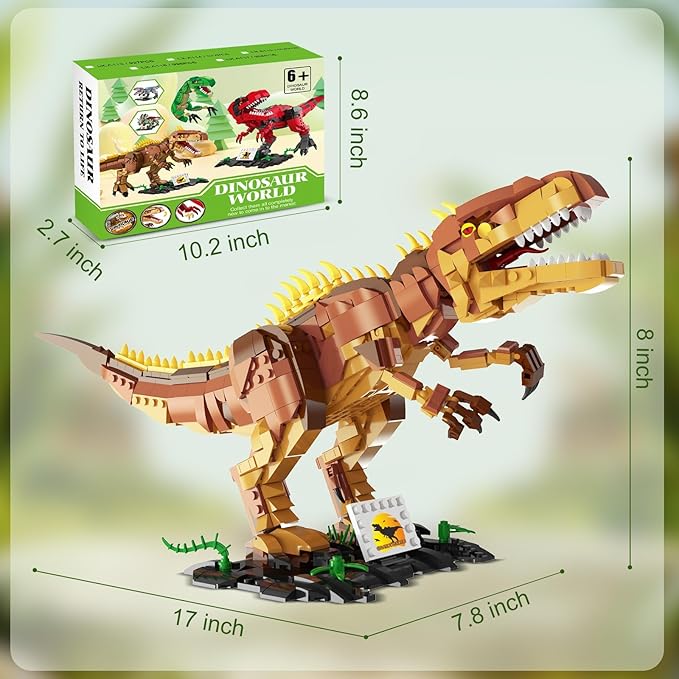 Dinosaur Building Blocks Toys for Kids Ages 6-14 | STEM Building Block Set, Christmas Birthday Gift for Boys Ages 6-8 7-9 8-14 (Brown)