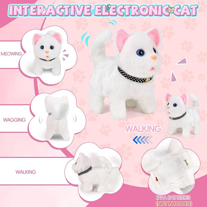 Doctor Kit for Girls, 27 Pcs Veterinarian Playset with Walking Cat Toy, Carrying Bag, Stethoscope & Dress Up Costume, Pretend Play Gift for Kids Toddlers Ages 3 4 5 6 Year Old