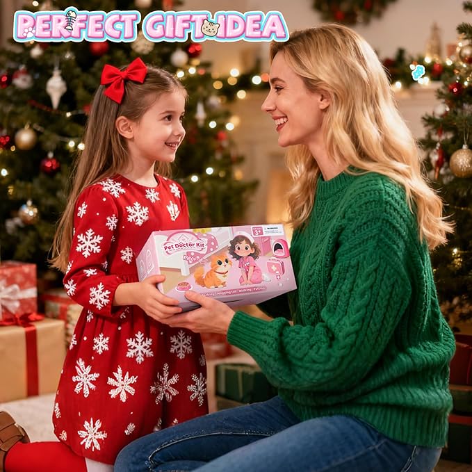 - Perfect Gift for Kids Ages 3-6: Beautifully packaged in a gift box, this girls doctor kit and pet vet playset is ideal for birthdays, Christmas, or holidays. Includes vet kit fun, interactive dog toy play, grooming activities, and learning for toddlers who love pets
