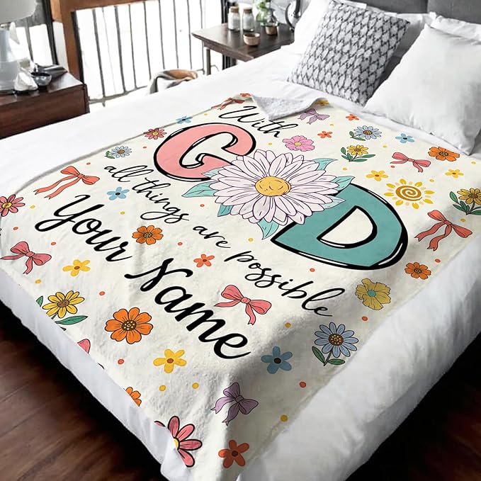 Personalized Blanket for Women Girls, Christian Throw Blanket Gifts for Kids Teens Adults, 50"x60" Cute Custom Flannel Blankets Gift Flannel Lightweight Warm Throws for Couch Sofa Bed Decor